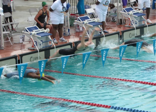 In a letter to SACW, Medi said “I want to let you know about my swimming achievements since I received your grant. At Easter, in the Welsh Nationals in Swansea, my time in the 100 backstroke qualified me for the Welsh team for the CYG in the Bahamas, where I came 4th in the 100 backstroke, then got a silver medal in the 50 and a bronze in the 200. My time for the 50 was a British record for 14-year-olds, my 100 was a Welsh Junior record and my 200 was a joint record holder (Welsh Juniors).” What a prospect! Here’s Medi (centre) in action in the CYG…